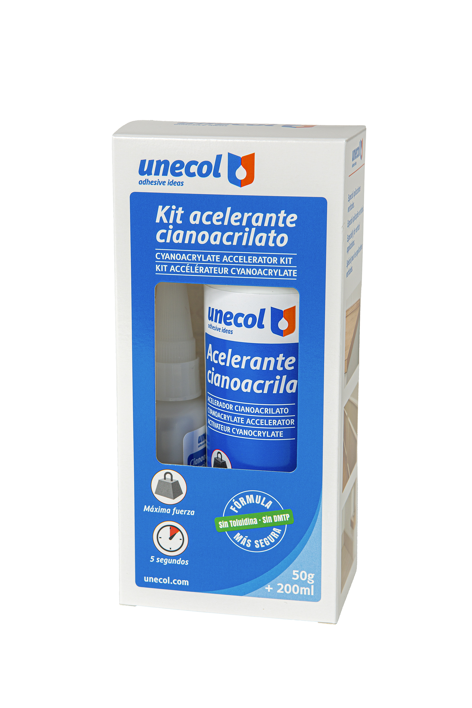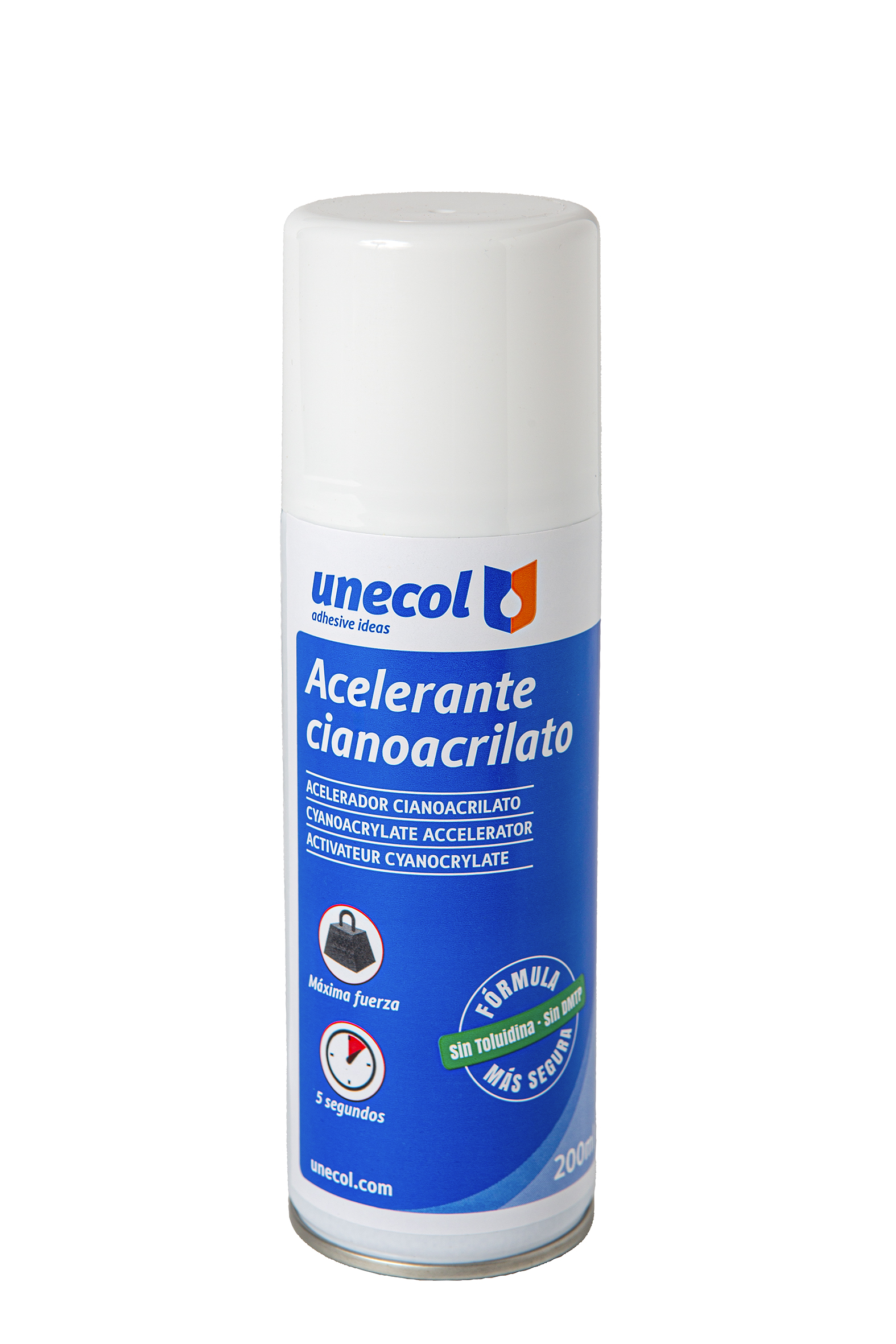 Cianoacrilato + aerosol acelerante para uniones de materiales porosos y uniones verticales, pegado instantáneo.